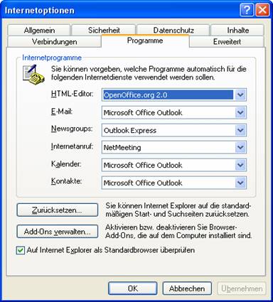 6. Programme: Hier können Sie vorgeben, welche Programme automatisch für die Internetdienste verwendet werden sollen. ( steht auch dran )